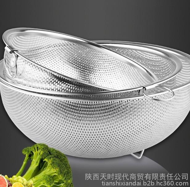铭发多用篮 厨房不锈钢单环水果篮洗菜篮淘米盆沥水篮密孔多用篮