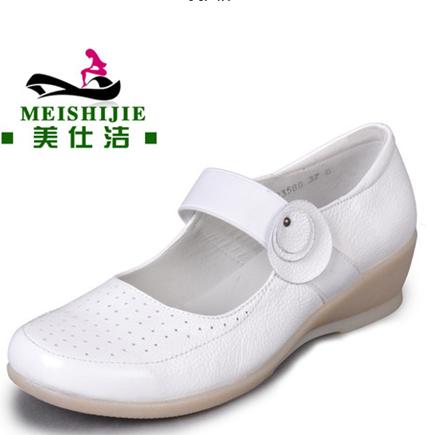 女鞋护士鞋白色坡跟真皮牛筋白色女单鞋休闲女鞋孕妇鞋
