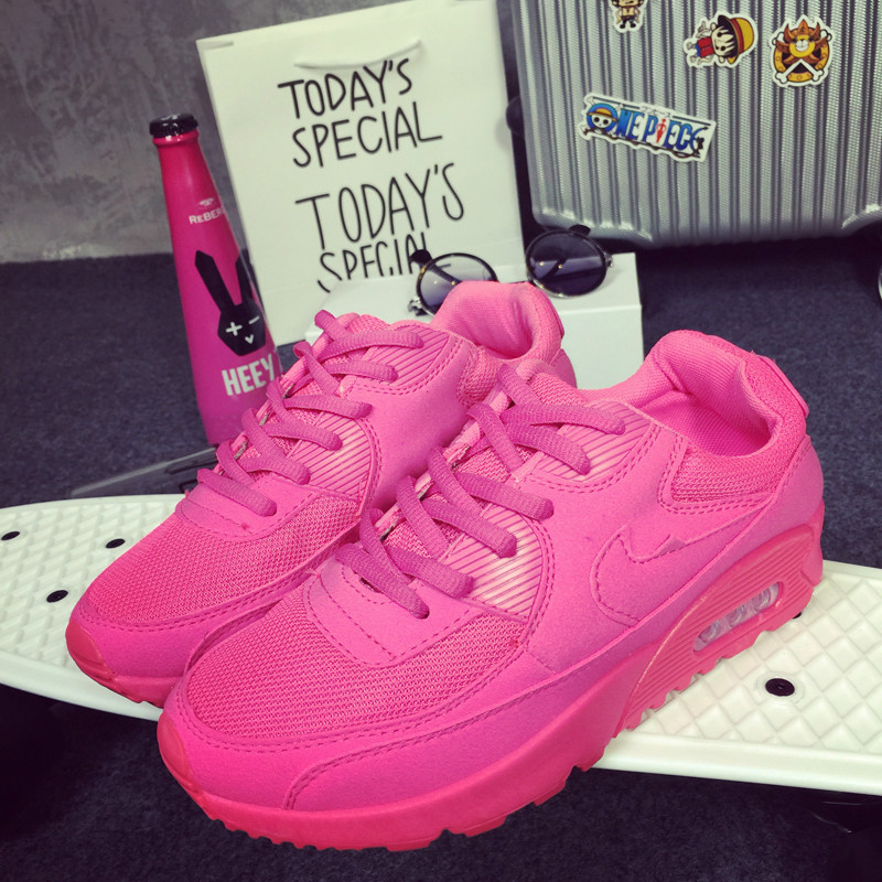 秋款荧光色休闲运动鞋透气除臭网面前系带学生跑步鞋