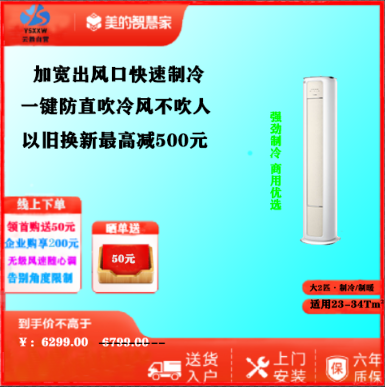 美的空调柜机3匹柜机套机 极地白