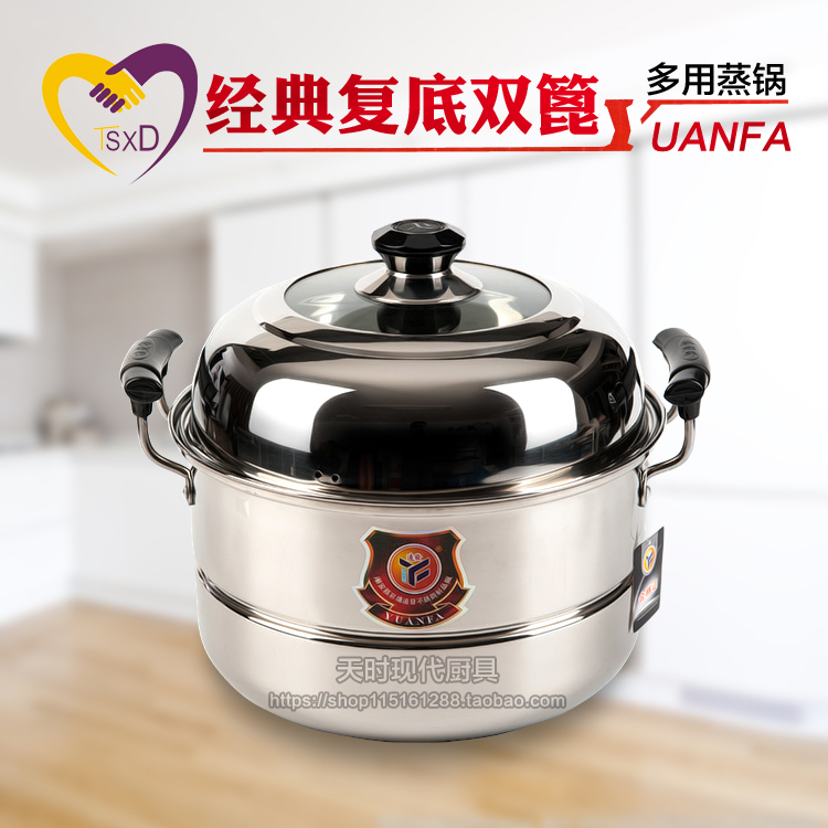 不锈钢单层蒸笼锅汤锅两用蒸屉加厚复底电磁炉锅