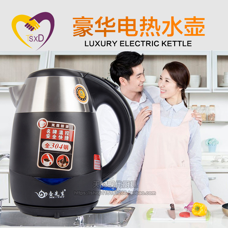 双层防烫HXS-608 电热水壶不锈钢自动断电烧水壶