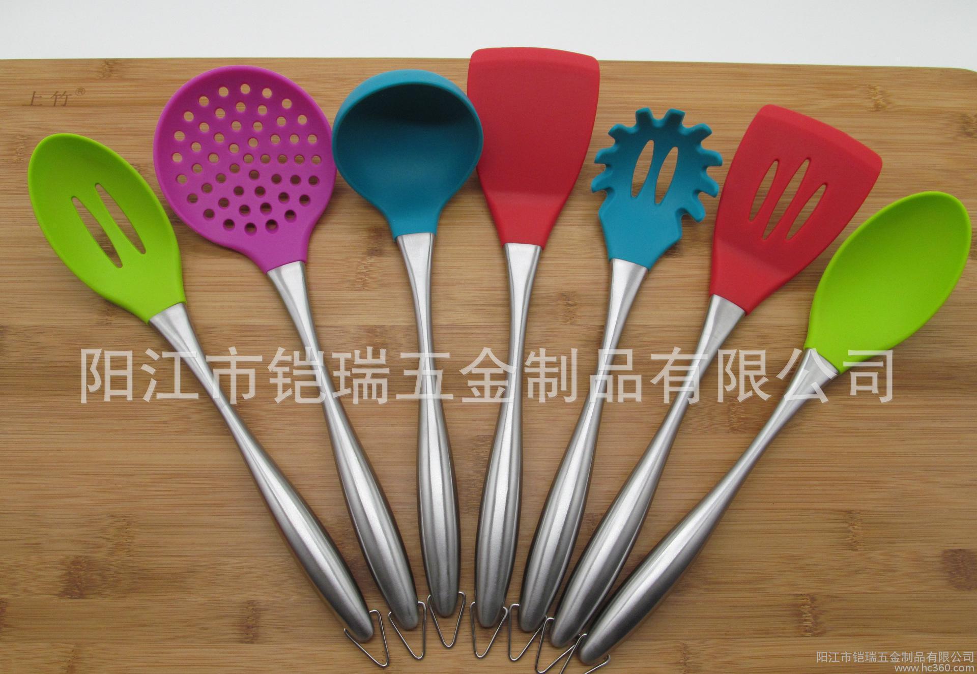 直销 不锈钢柄硅胶厨具七件套装 餐具套装