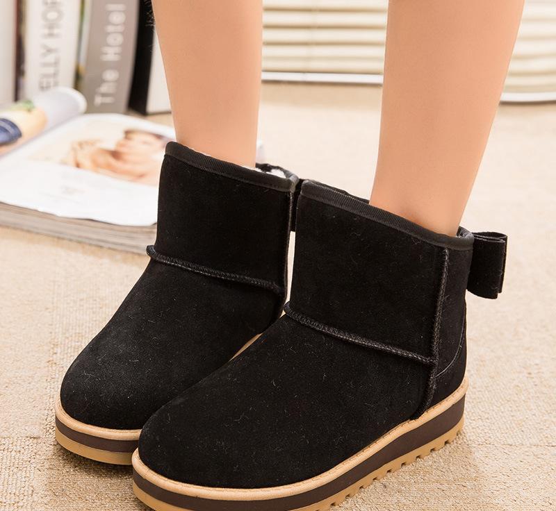 豪佳美雪地靴批发女短筒雪地靴加厚棉鞋 磨砂皮蝴蝶结装饰代发