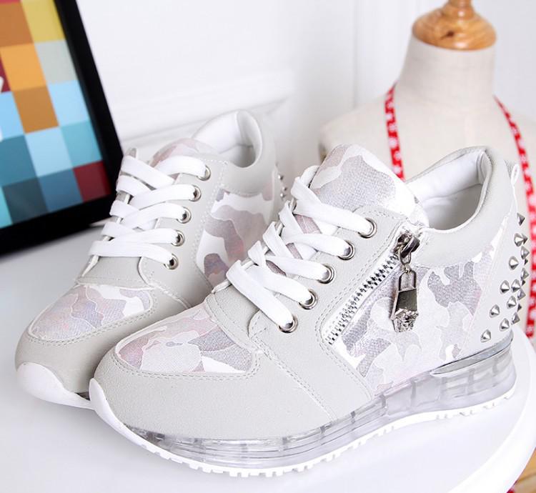 秋季新款圆头厚底中跟浅口交叉绑带休闲百搭女运动鞋