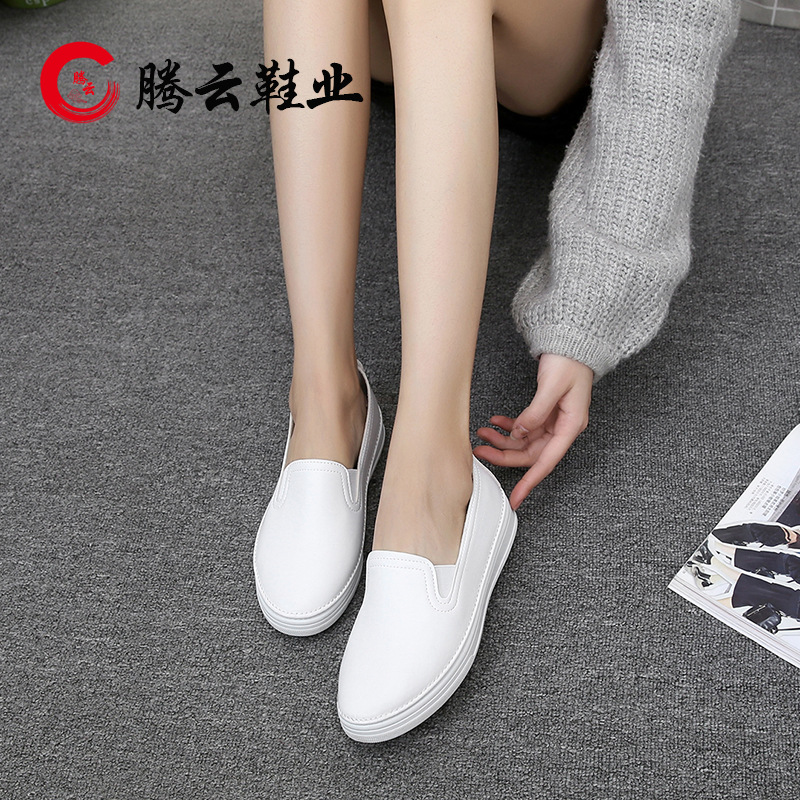 女鞋护士鞋白色坡跟真皮牛筋白色女单鞋休闲女鞋孕妇鞋