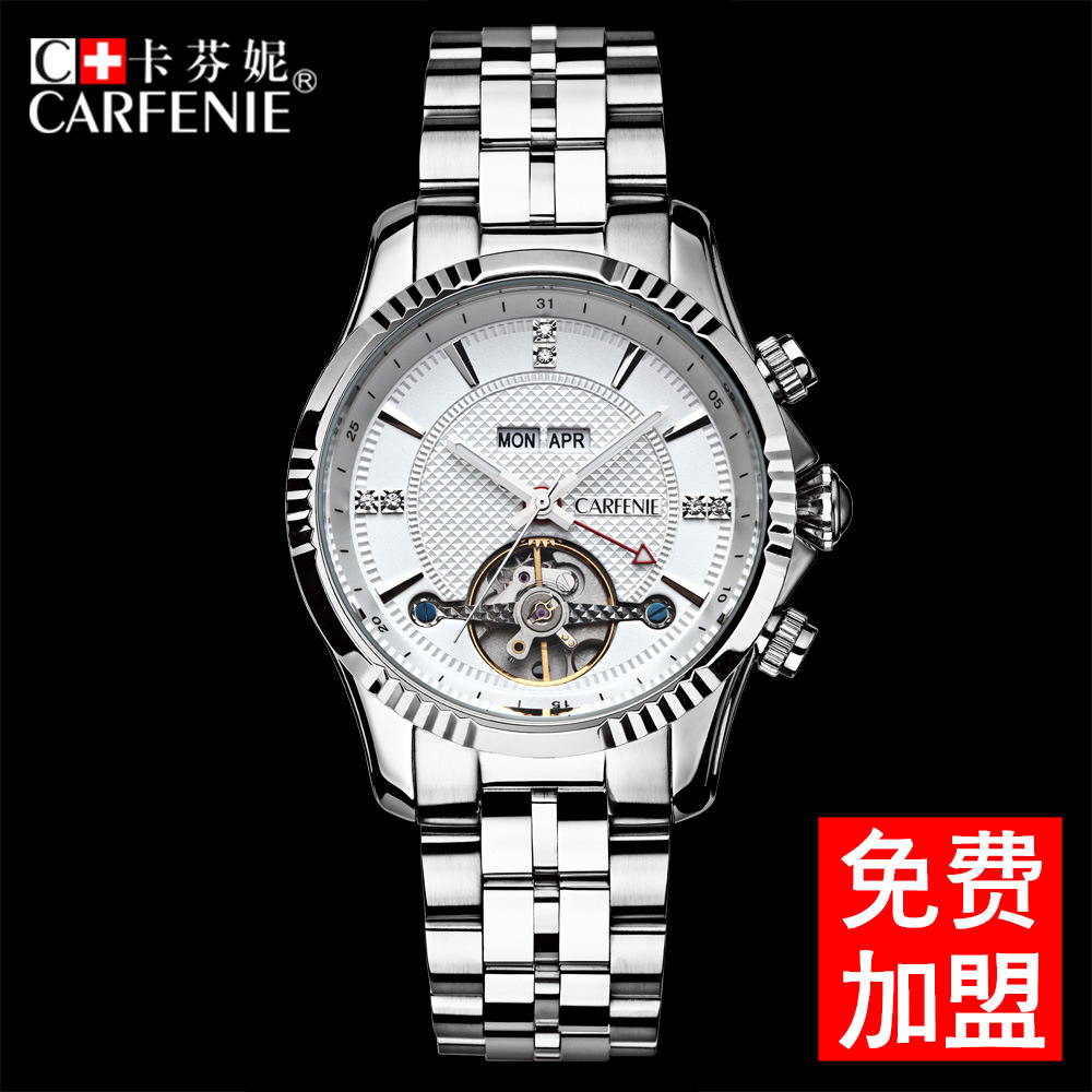 高档男士自动机械手表 蝶飞系列男士商务钢带机械表